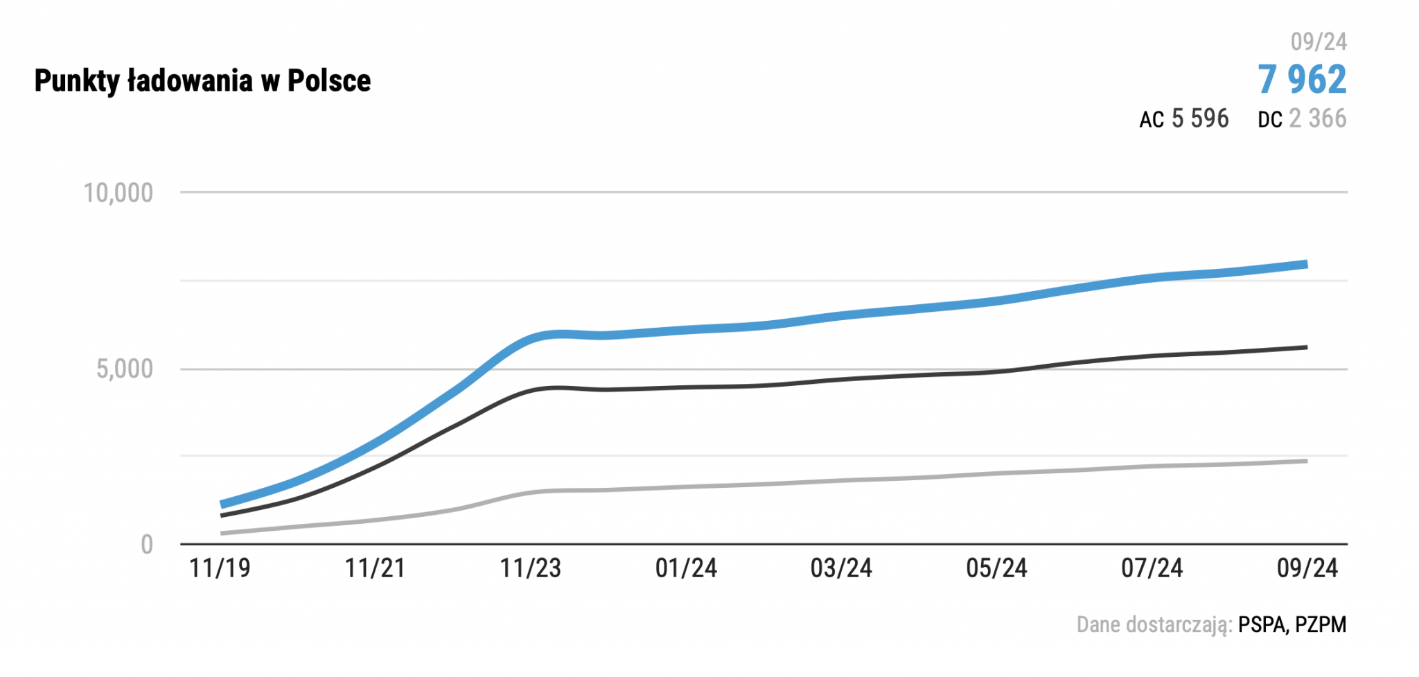 Ładowanie elektryka trwa kilka godzin, nie ma gdzie tego robić, a ostatecznie cena prądu jest wyższa niż zatankowanie baku benzyny w normalnym samochodzie spalinowym – takie komentarze nadal można często usłyszeć lub przeczytać na forach internetowych czy w mediach społecznościowych. Ale w ostatnich latach rzeczywistość bardzo się zmieniła. Ładowanie samochodu elektrycznego jest coraz szybsze i nierzadko proces ten trwa zaledwie kilkanaście minut, a już po kilku mamy zasięg większy o 100 km. Do tego w Polsce bardzo dynamicznie rozwija się sieć szybkich stacji ładowania. W 2019 r. mieliśmy nad Wisłą tylko 1120 publicznych punktów ładowania, a dzisiaj jest ich już niemal 8000 i w zasadzie codziennie otwierają się nowe.