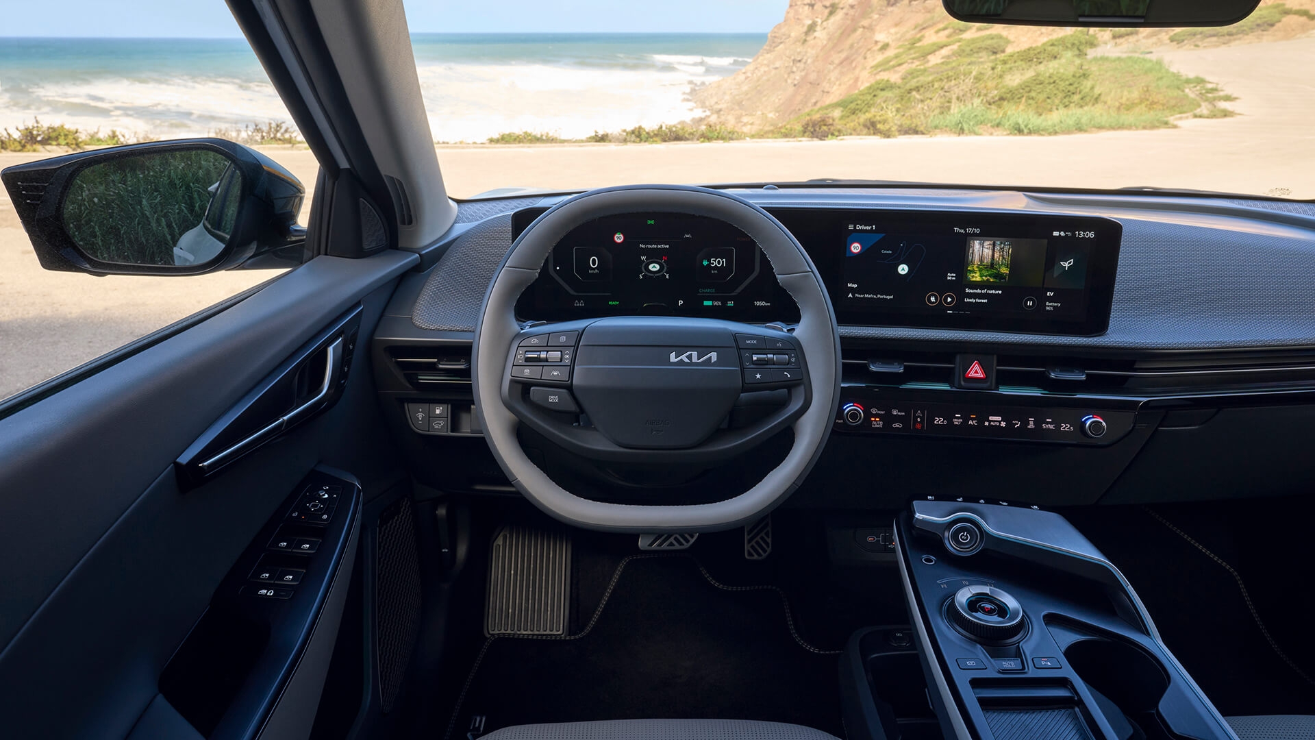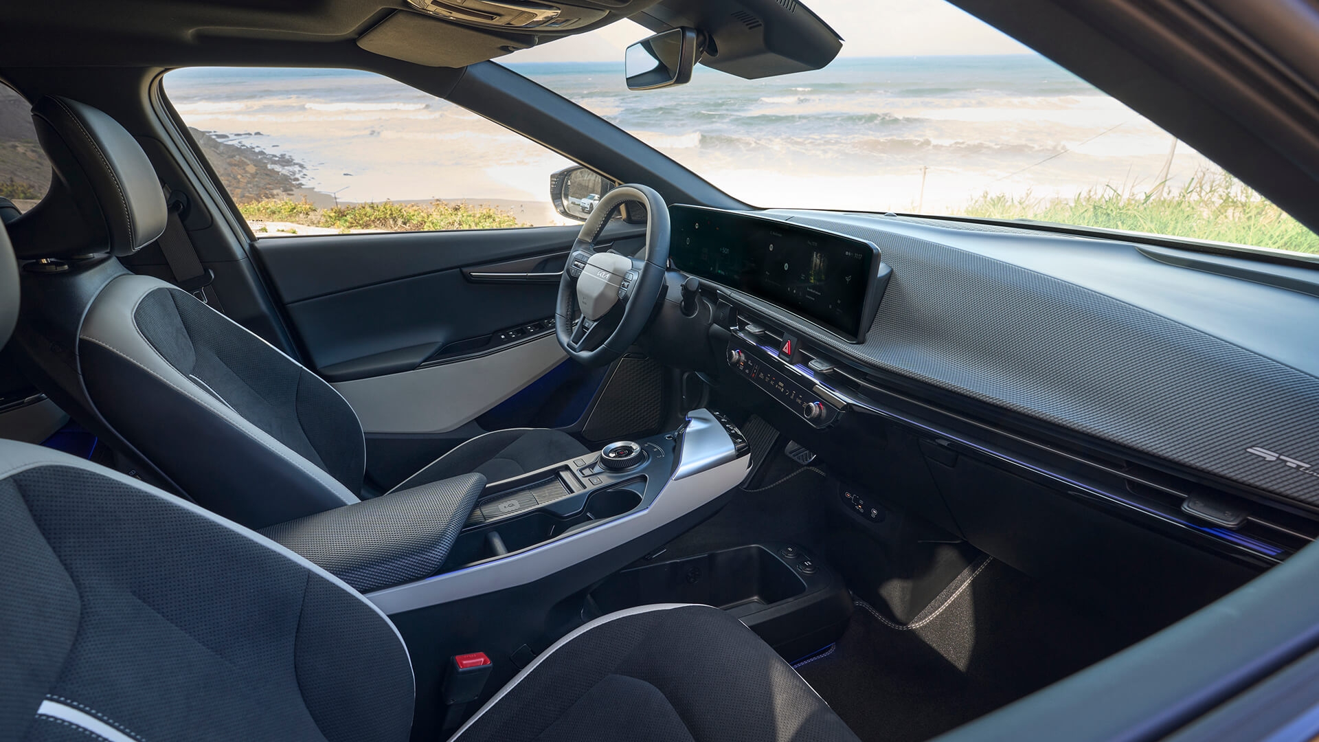 Przeprojektowano także nieco panel centralny, gdzie lakierowany plastik ustąpił miejsca bardziej ekskluzywnemu wykończeniu imitującemu szczotkowaną stal. W tym miejscu pojawił się także czytnik linii papilarnych – odciskiem palca można aktywować swój profil Kia Connect oraz uruchomić samochód bez użycia kluczyka. Jednocześnie poprawiono ładowarkę indukcyjną, która teraz ma moc 15 W.