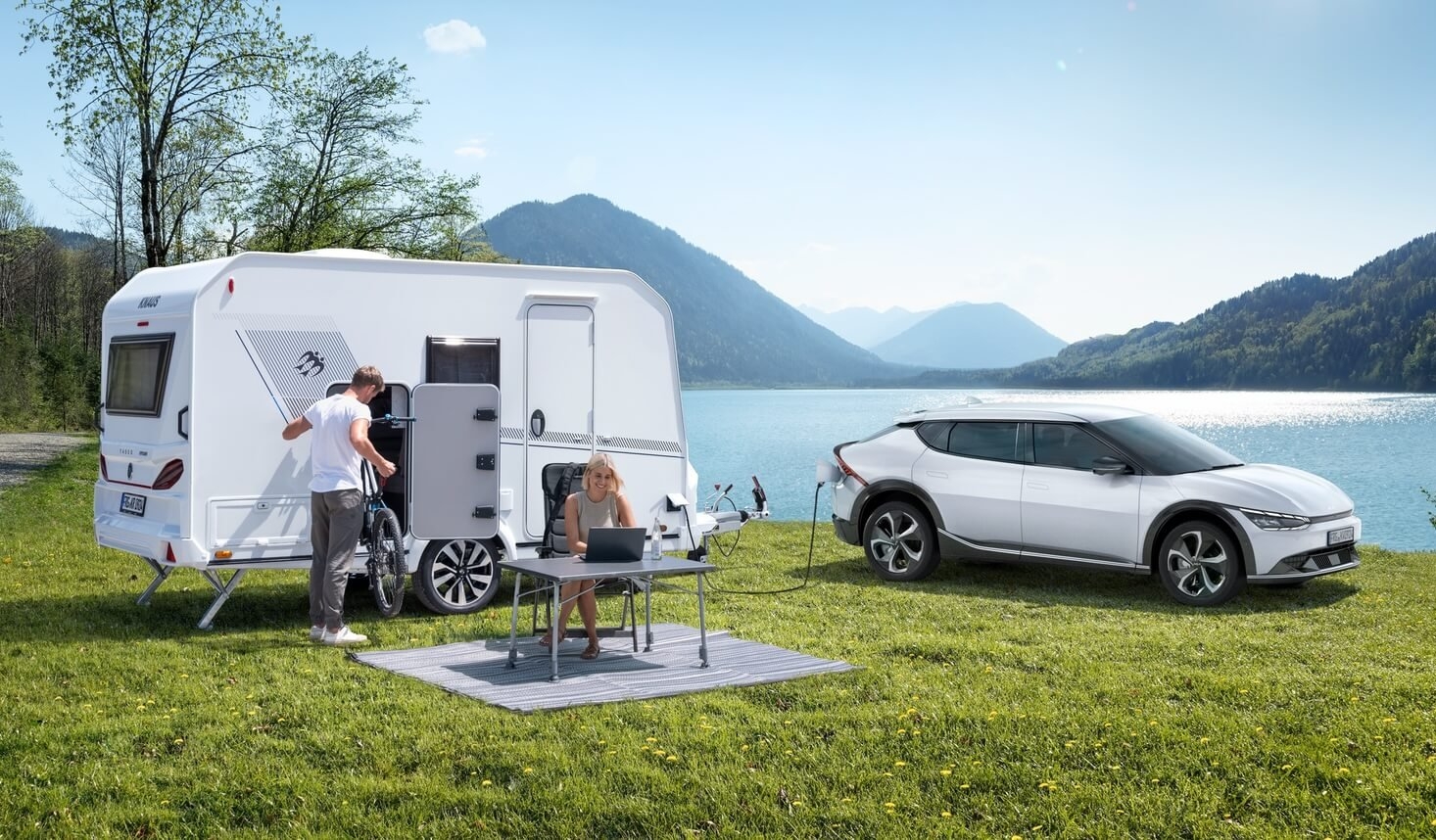 V2L, czyli Vehicle-to-Load opiera się na prostocie. We wnętrzu każdej elektrycznej Kii z tą technologią mamy gniazdko 230V, a do tego również specjalną przejściówkę wpinaną do gniazda ładowania, która również zakończona jest gniazdem 230V. Do obu gniazd możemy podłączyć dowolne urządzenia elektryczne o łącznej mocy około 3,7 kW. To dużo. Przykładowo, przeciętna moc domowej lodówki to 200W, tradycyjnego odkurzacza około 800W, a dobrego czajnika elektrycznego – 2000W. Wniosek? Np. na kempingu mamy dostęp do własnego, w pełni niezależnego źródła energii, której wystarczy nawet na kilka tygodni biwakowania!