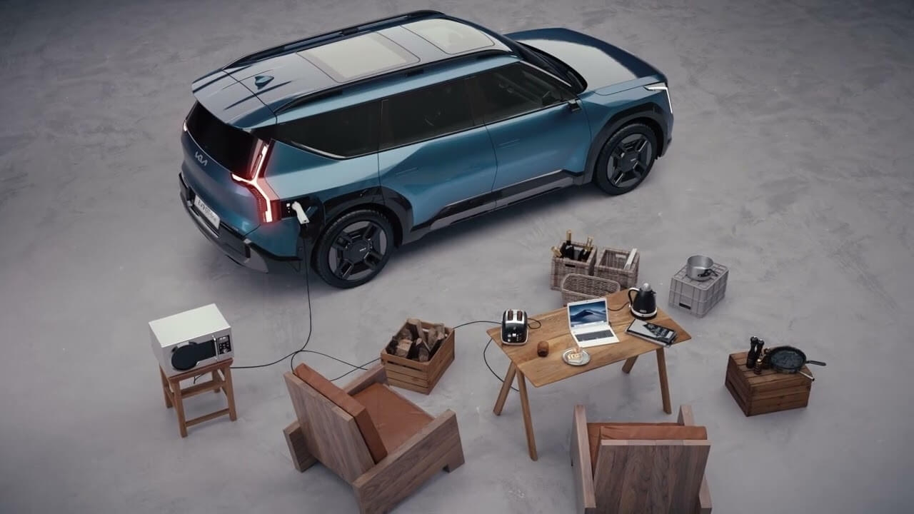 Każdy model Kia wyposażony w tę technologię ma w ustawieniach możliwość włączenia i wyłączenia funkcji Vehicle-to-Load. Gdy jest włączona, wystarczy podpiąć dowolne urządzenia do gniazdka w samochodzie lub do specjalnej przejściówki wpiętej w gniazdo ładowania. I już, to wszystko. Urządzenie jest gotowe do użycia. Samo auto w tym czasie może pozostawać zamknięte.